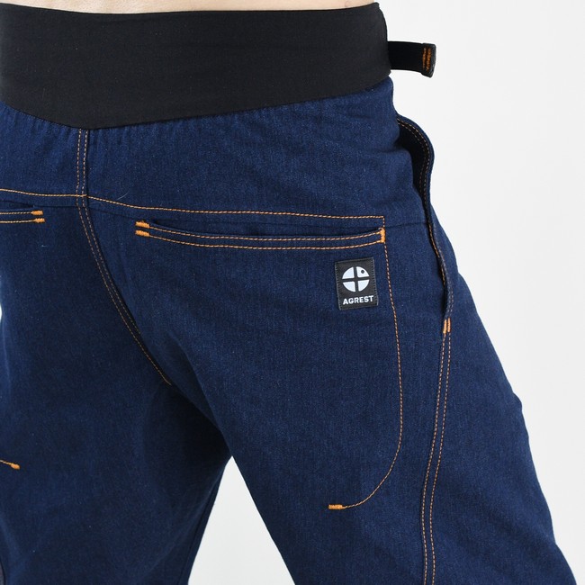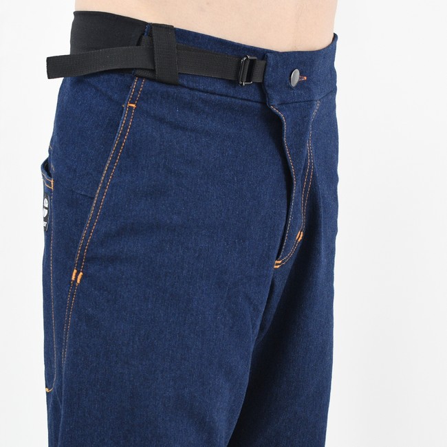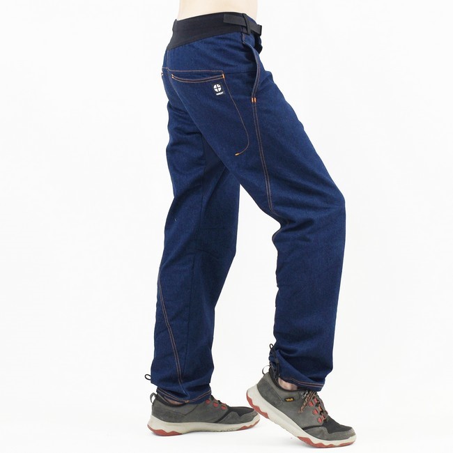 Męskie spodnie jeansowe CRUXBREAKER to uniwersalne spodnie wspinaczkowe, nieco luźniejsze niż SKILLER, ale węższe niż BOULDER FIGHTER, więc sprawdzą się zarówno do boulderingu jak i podczas wspinania z liną.
